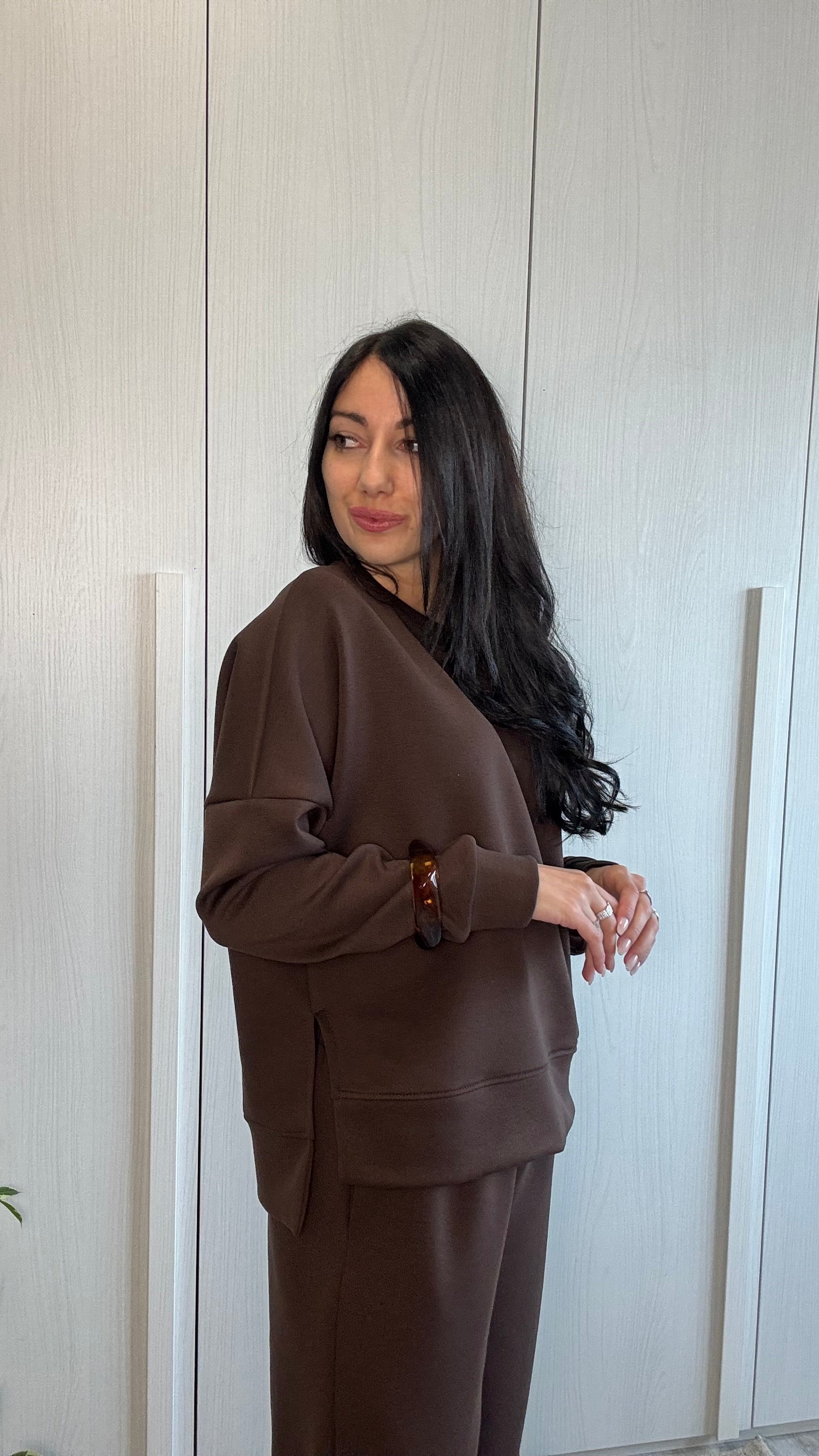 La Tuta Everyday è il capo essenziale che unisce comfort assoluto e stile quotidiano. Realizzata in tessuto morbido e avvolgente, è composta da felpa e pantalone coordinato con vestibilità rilassata ma ordinata. La linea pulita valorizza la figura senza costringere, rendendola ideale per l’uso quotidiano, il tempo libero e i momenti off-duty.