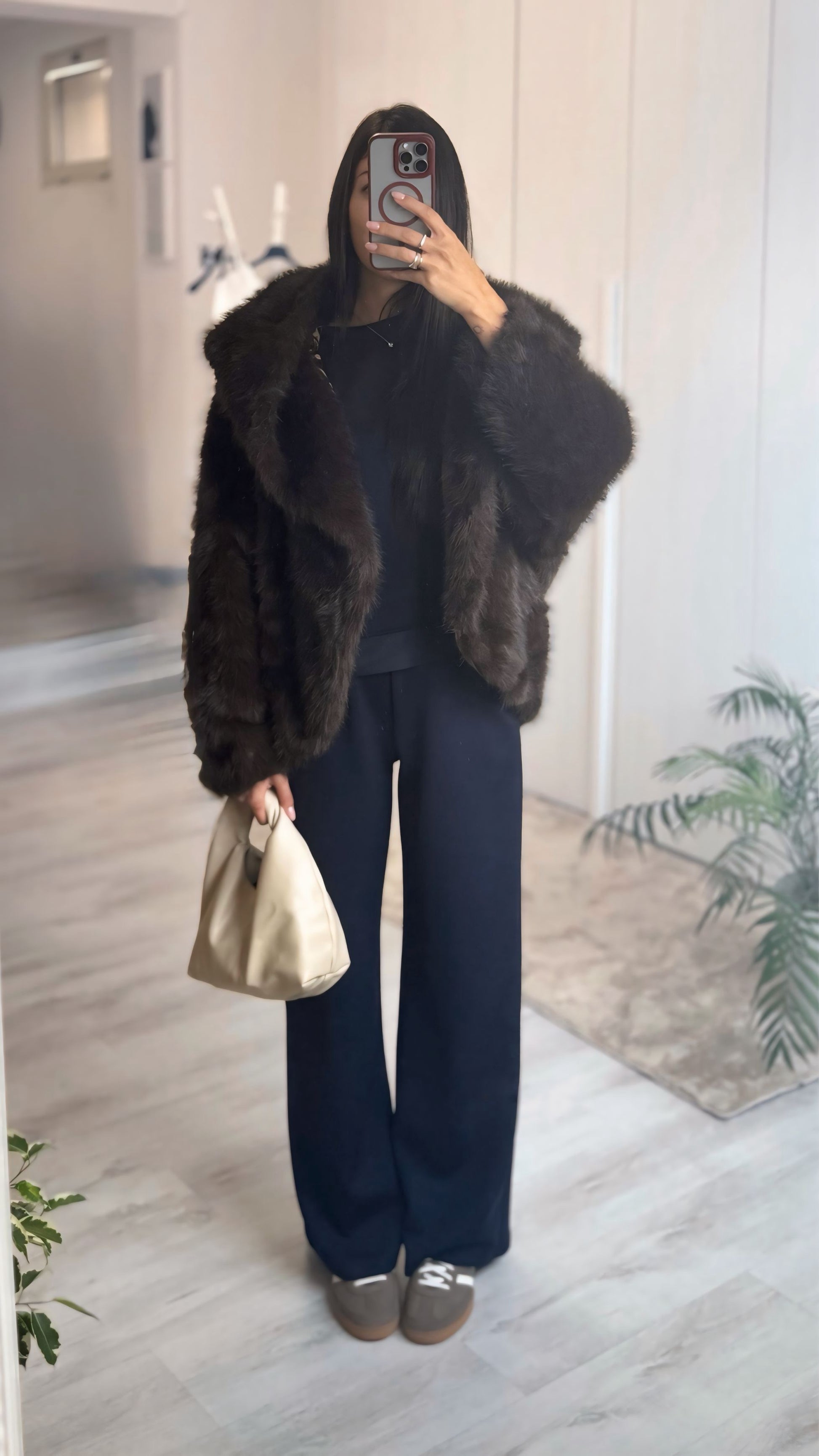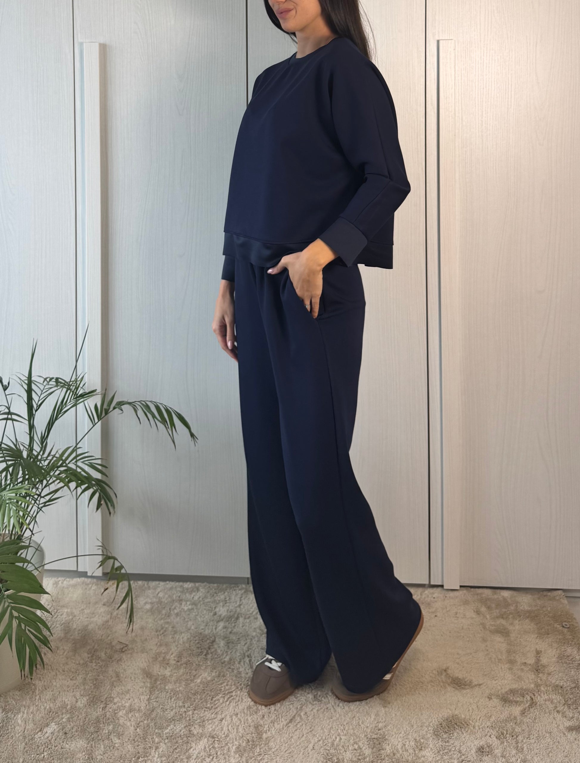 Completo raffinato felpa girocollo e pantalone svasato. Perfetto da indossare insieme o da spezzare per look sempre diversi. Versatile e chic per ogni occasione.